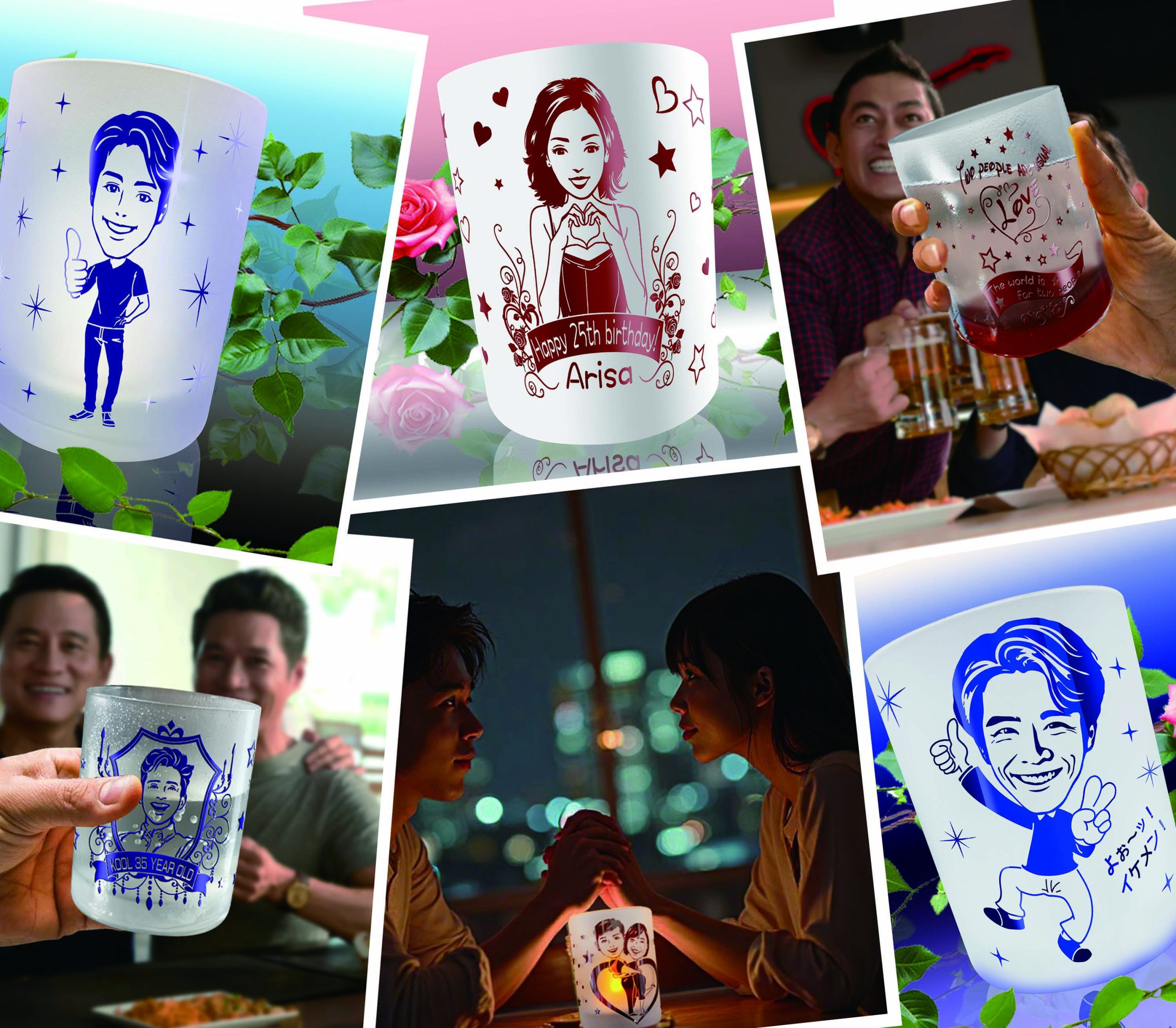 贈られた人も、贈った人も自慢の似顔絵グラス